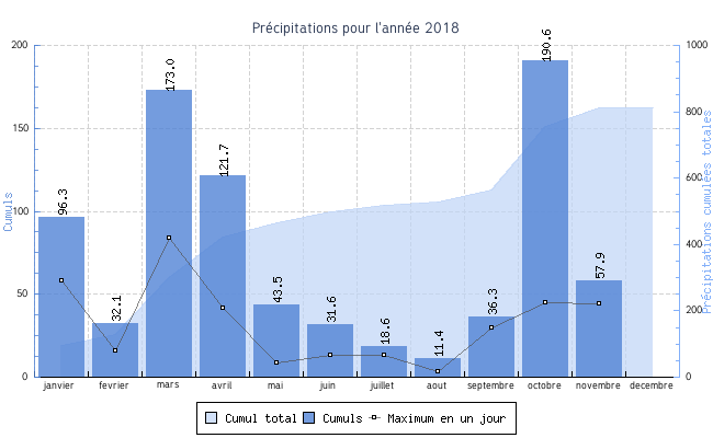 | novembre | 7.3 °C | 10.0 °C | 16.1 °C | 13.9 °C | 11.6 °C | 7.1 km/h | 31.3 km/h | S |